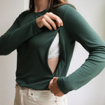 Maglietta per l'allattamento a maniche lunghe verde bosco